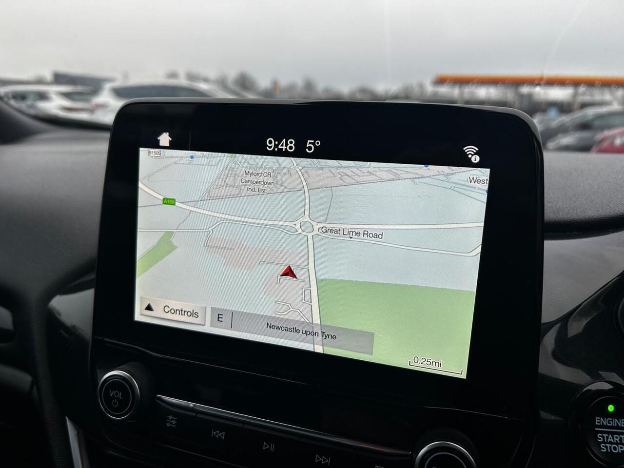 The ST-Line specification gives the car a dynamic appearance and a well-equipped interior, starting with a clear touchscreen infotainment system featuring full colour satellite navigation to keep you confidently on course. Bluetooth phone preparation allows for hands-free calls and music streaming, while air conditioning ensures a comfortable cabin in all weather conditions. The heated front windscreen is a particularly useful feature, providing quick and easy demisting on cold mornings.